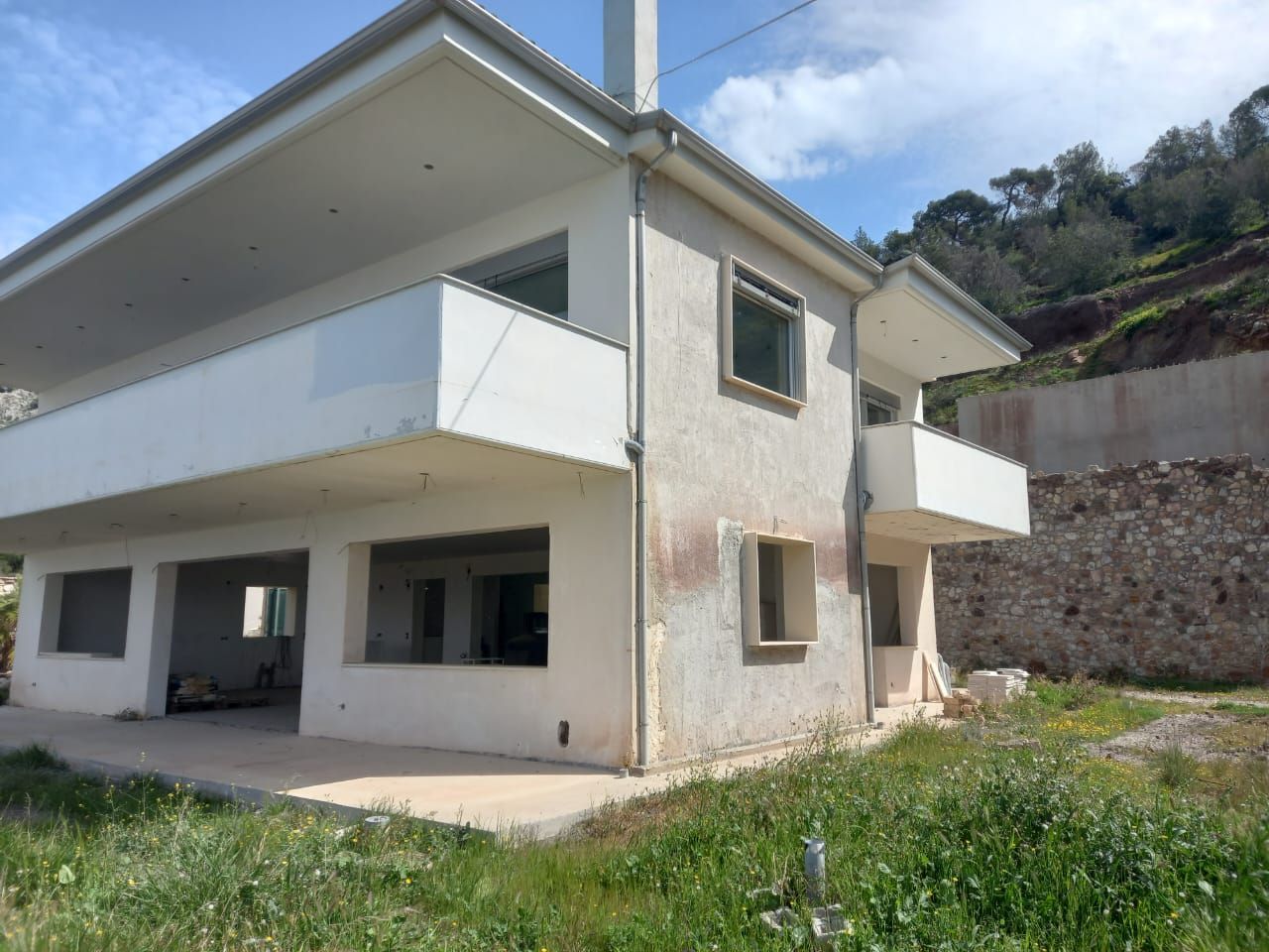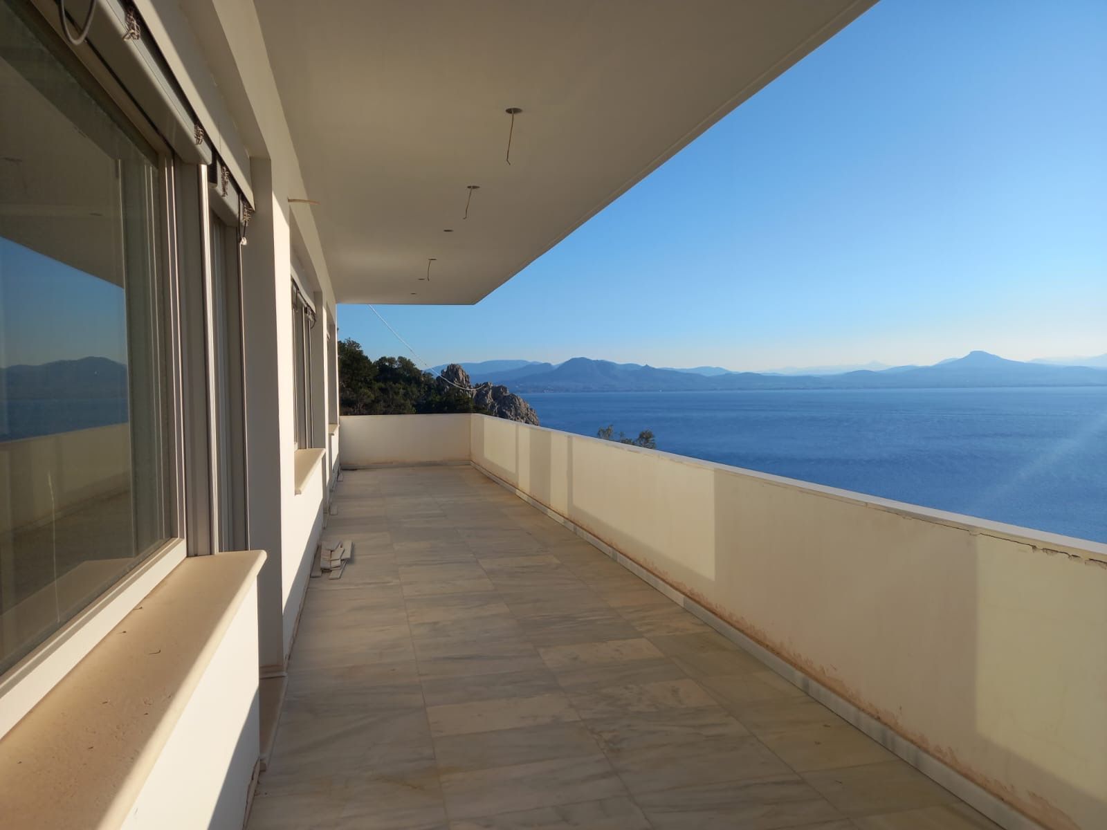 Υπέροχης και μαγευτικής θέας αυτόνομη ημιτελής διπλοκατοικία συνολικής επιφάνειας 340 τ.μ. σε οικόπεδο 4.170 τ.μ. Η κατοικία κατασκευάστηκε το 2007 με 2 επίπεδα, ισογείου και 1ου ορόφου. Αποτελείται από ένα υπέροχο και μεγάλο χώρο υποδοχής, κουζίνα, 5 υπνοδωμάτια, 5 μπάνια. Διαθέτει εξαιρετικά τριπλά ενεργειακά κουφώματα αλουμινίου, δάπεδο με πλακάκια, ενδοδαπεδια θέρμανση καθώς και ψυξη, 2 τζάκια, πόρτα ασφαλείας, πολλούς αποθηκευτικούς χώρους, μια θέση στάθμευσης, προεγκατάσταση πισίνας και έναν πολύ όμορφο περιμετρικά κήπο ο οποίος εκτείνεται σε 3 επίπεδα. Η οικία βρίσκεται σε μια υπέροχη τοποθεσία, μόλις 5 λεπτά από την παραλία Φλάμπουρο, με συγκλονιστική θέα στη θάλασσα και στον Κορινθιακό κόλπο. Από κάθε γωνία του σπιτιού το βλέμμα χάνεται στον ανοιχτό ορίζοντα και το γαλάζιο της θάλασσας. Τα μεγάλα παράθυρα αφήνουν το φως να πλημμυρίσει τους εσωτερικούς χώρους, ενώ το απαλό αεράκι από τη θάλασσα δημιουργεί αίσθηση ηρεμίας και χαλάρωσης. Μια εξαιρετική παραθεριστική ή μόνιμη κατοικία, μόλις λεπτά από το Λουτράκι. Ιδανική για golden visa και επένδυση.
