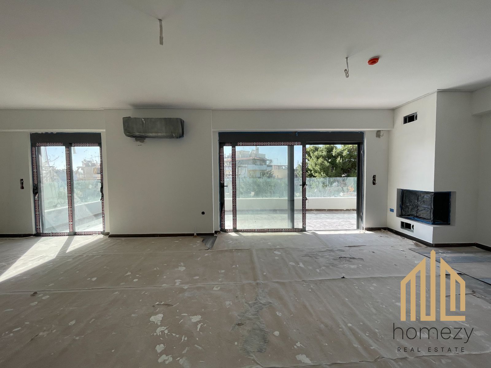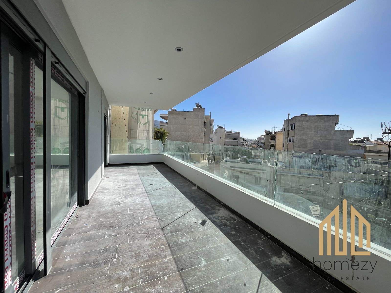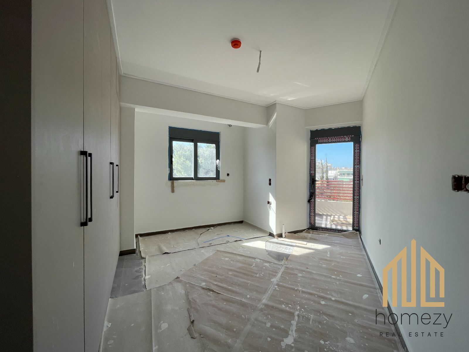 Σε προνομιακή και ήσυχη τοποθεσία στην Άνω Νέα Σμύρνη, υπό κατασκευή οροφοδιαμέρισμα 114 τ.μ., στον 3ο όροφο νεόδμητου κτιρίου έξι επιπέδων, ενεργειακής κλάσης Α, με ανεμπόδιστη θέα σε καταπράσινο πάρκο και εξαιρετική ποιότητα κατασκευής από κορυφαία κατασκευαστική εταιρεία των νοτίων προαστίων.