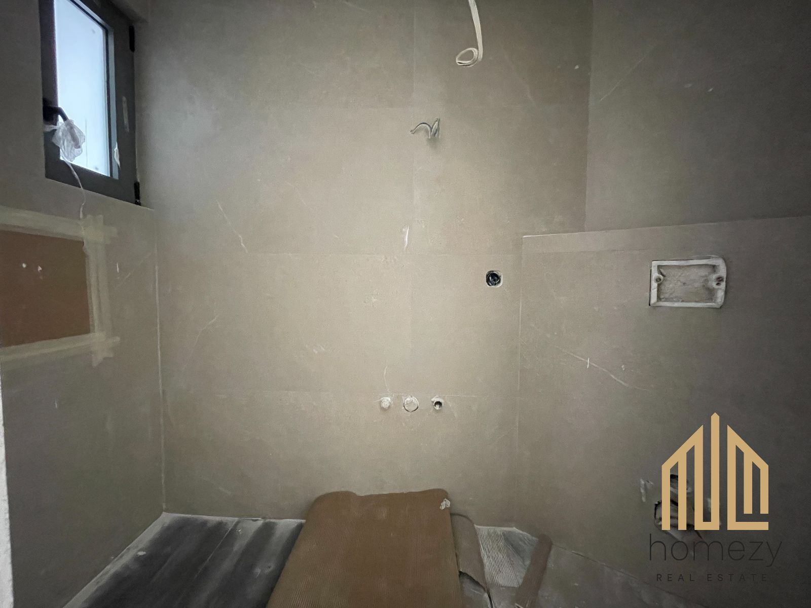 Περιλαμβάνει τρία άνετα και φωτεινά υπνοδωμάτια (το ένα εκ των οποίων master) και ένα WC με ντουζιέρα, επενδυμένα με υψηλής ποιότητας γρανιτοπλακάκι, προσφέροντας λειτουργικότητα και κομψότητα.
