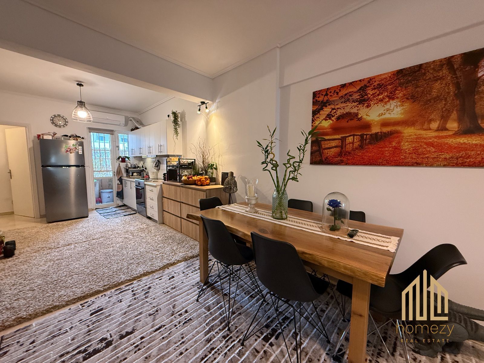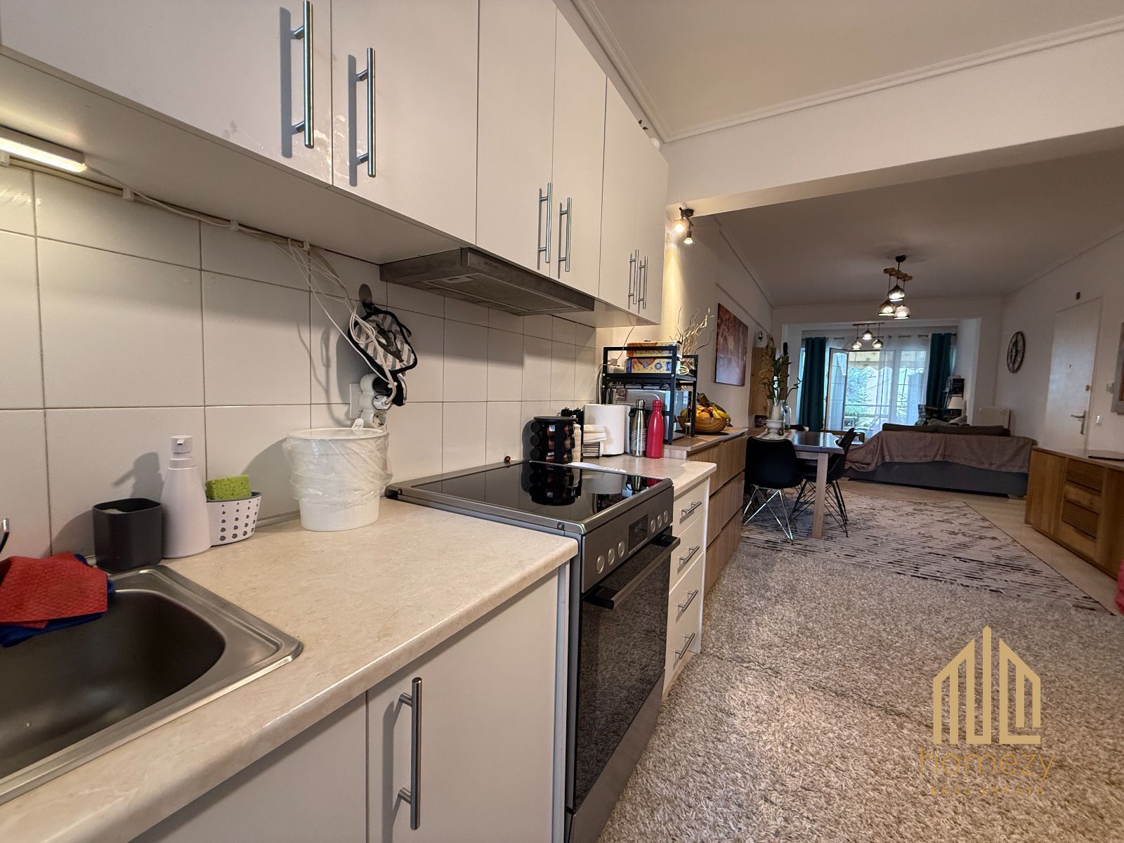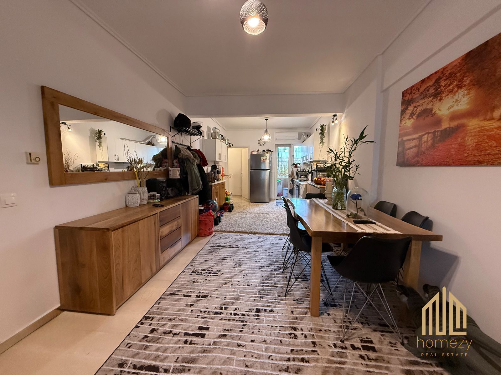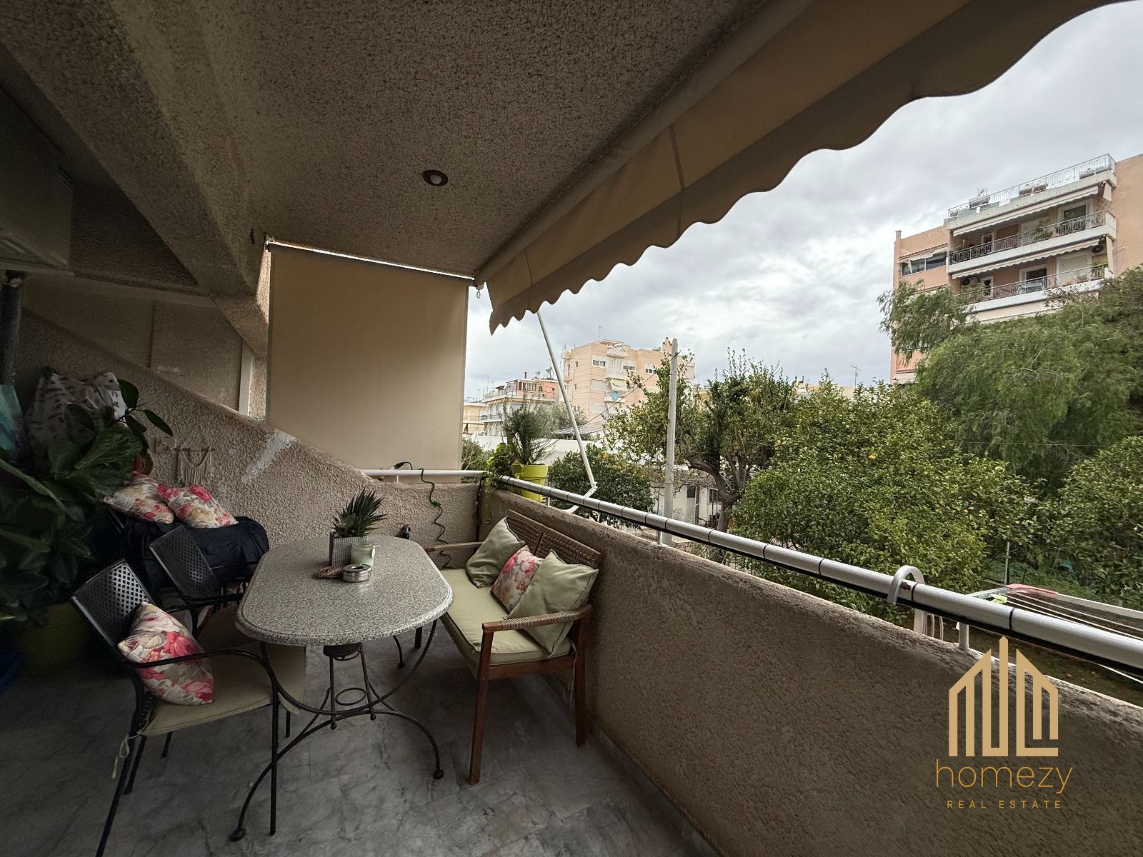 Η κατοικία διαθέτει ενιαίο σαλόνι με κουζίνα σε open-plan διάταξη, προσφέροντας άνεση και ευελιξία. Το σαλόνι ανοίγεται σε ένα ιδιαίτερα όμορφο μπροστινό μπαλκόνι, ενώ τα δύο υπνοδωμάτια έχουν πρόσβαση σε μεγάλο πίσω μπαλκόνι με ανοιχτωσιά και θέα σε πράσινο, ενισχύοντας την αίσθηση ηρεμίας και ιδιωτικότητας. Η κουζίνα διαθέτει και δικό της μικρό μπαλκόνι. Περιλαμβάνει δύο άνετα υπνοδωμάτια και ένα μπάνιο με πατάρι αποθήκευσης.