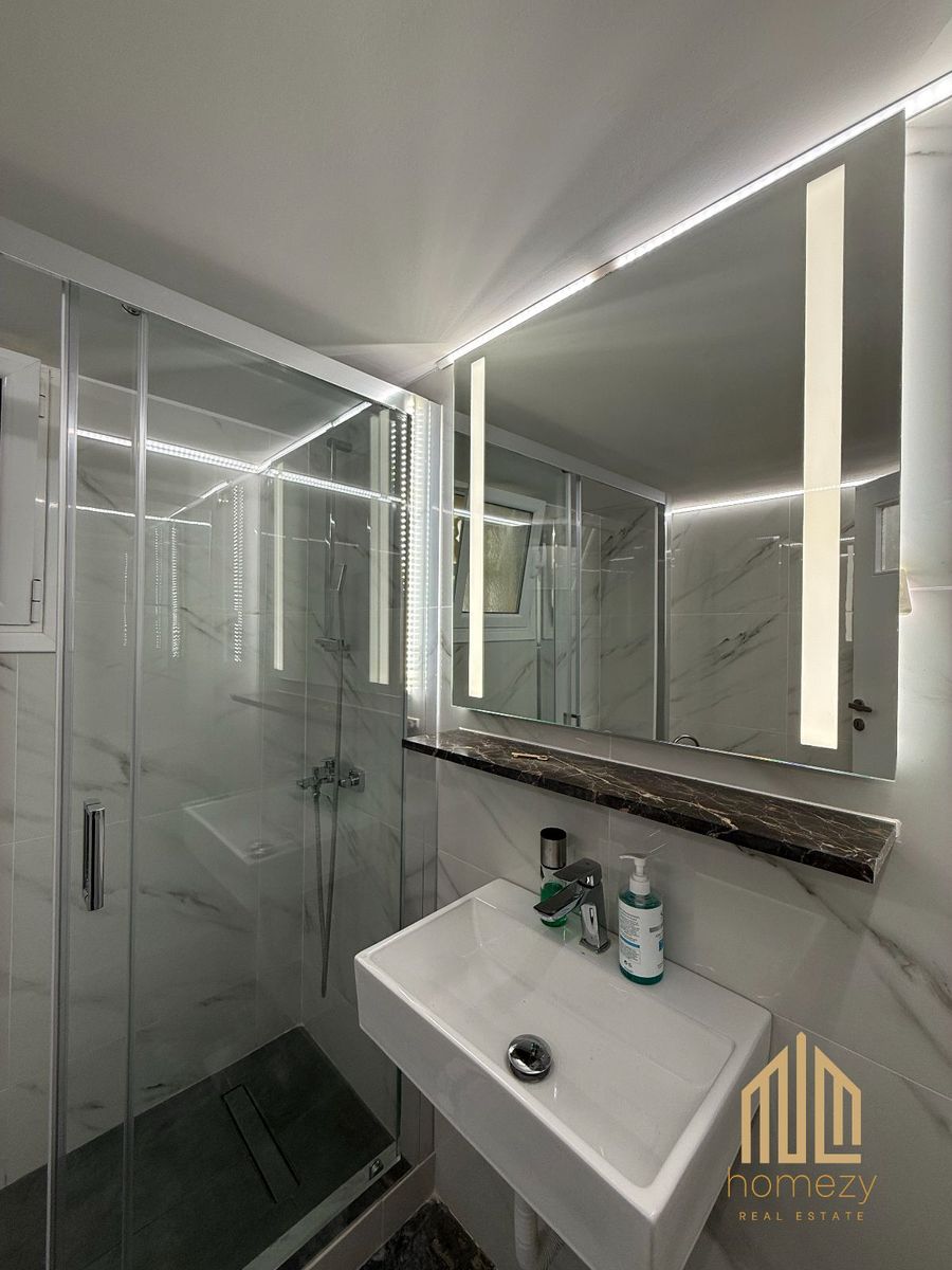 Το ακίνητο έχει ανακαινιστεί το 2025 και παραδίδεται σε άριστη κατάσταση. Διαθέτει πόρτα ασφαλείας, κουφώματα αλουμινίου με σίτες, τέντες, ασανσέρ, δάπεδα μαρμάρου και ξύλου, κλιματισμό, ενώ η θέρμανση είναι κεντρική πετρελαίου.