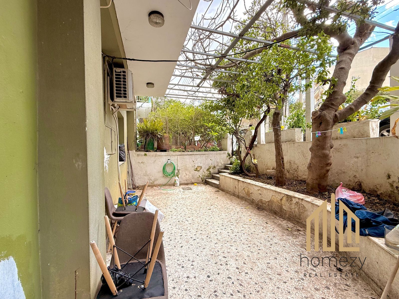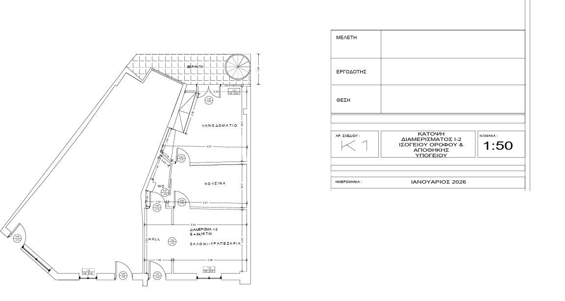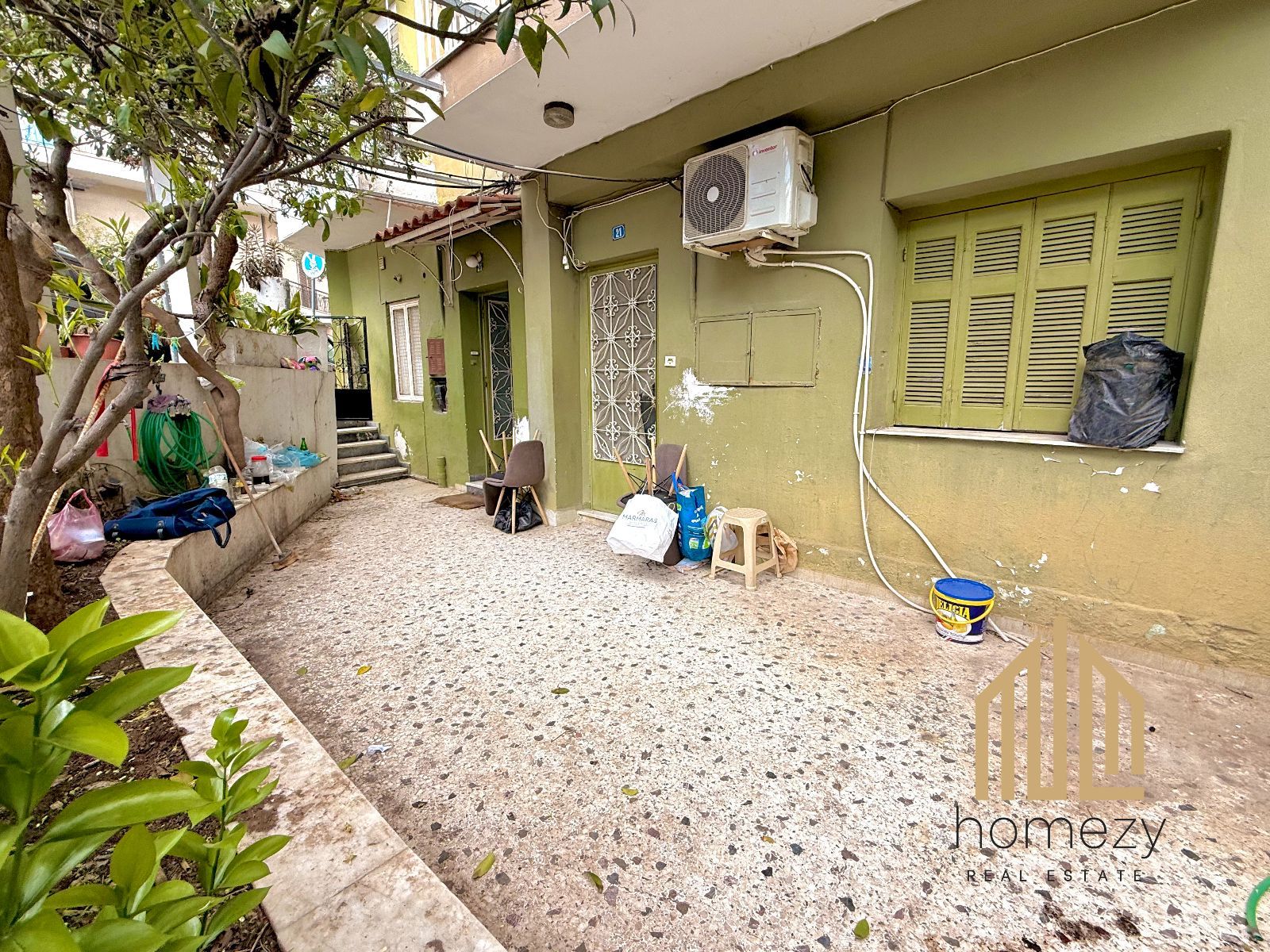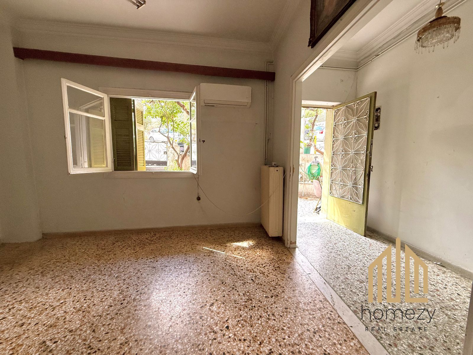 α) Διαμέρισμα ισογείου επιφάνειας 54,75 τ.μ. αποτελούμενο από καθιστικό, κουζίνα, μπάνιο και ένα υπνοδωμάτιο ενώ διαθέτει και αποθήκη 8,82 τ.μ. Το διαμέρισμα έχει πρόσβαση σε κοινόχρηστη μπροστινή αυλή στο ισόγειο και κοινόχρηστη πίσω αυλή στο υπόγειο, όπου βρίσκεται η αποθήκη και το λεβητοστάσιο.